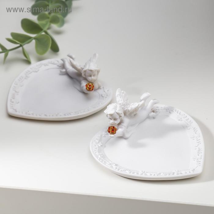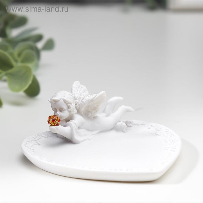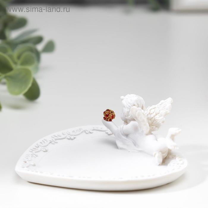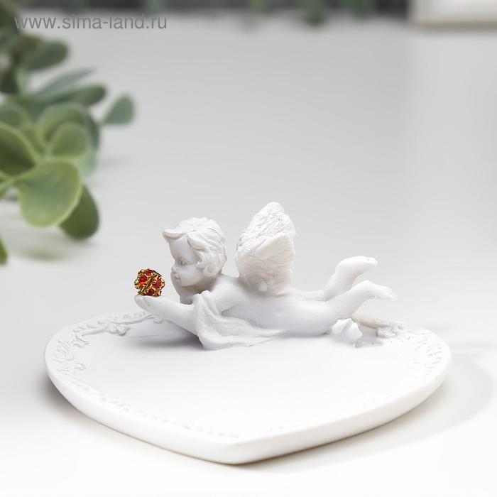 Сувенир полистоун подставка для колец "Белоснежный ангел с красным шаром" МИКС 3х8,6х8,2 см 483871