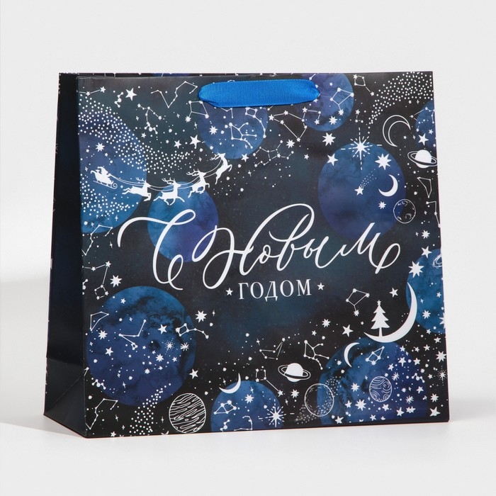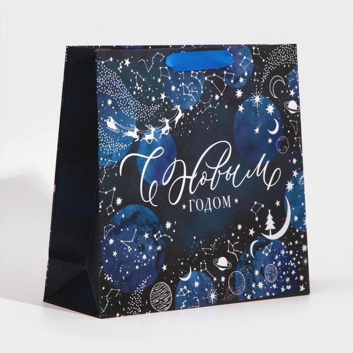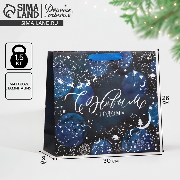 Пакет подарочный новогодний ламинированный «Волшебная ночь», M 30 х 26 х 9 см, Новый год
