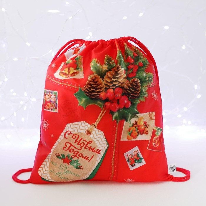 Новый год. Сумка под сладости 290 х 340 мм, «С Новым годом», посылка (мягкий полиэстер плотностью 210D)
