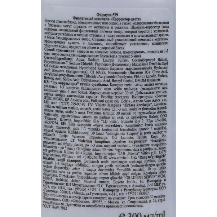 Подарите своим волосам идеальный холодный оттенок и здоровый вид с фиолетовым шампунем Floresan. Наслаждайтесь свежим и натуральным цветом, который подчеркнет вашу красоту и индивидуальность.