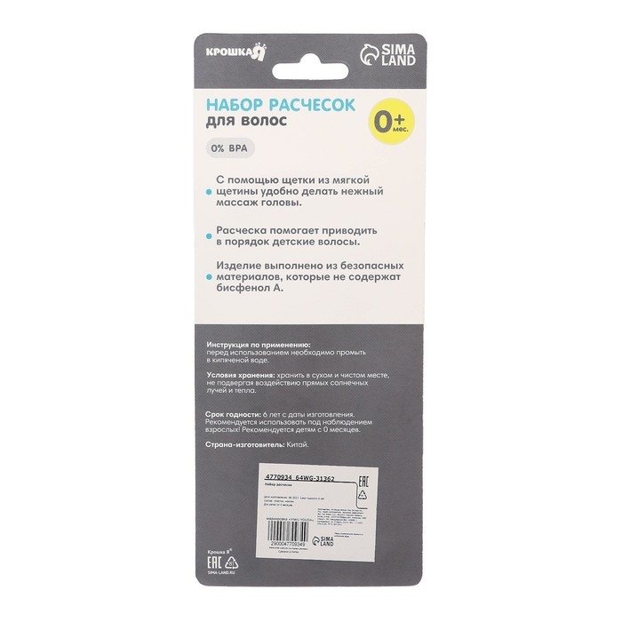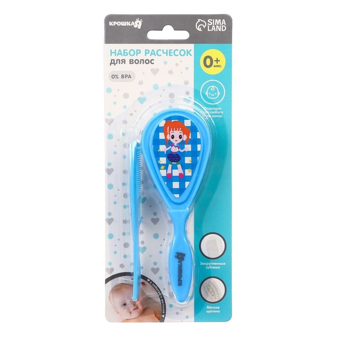 Расческа-щетка с мягкой щетиной и удобная расческа с закругленными зубчиками предназначены для малышей с первых дней жизни.