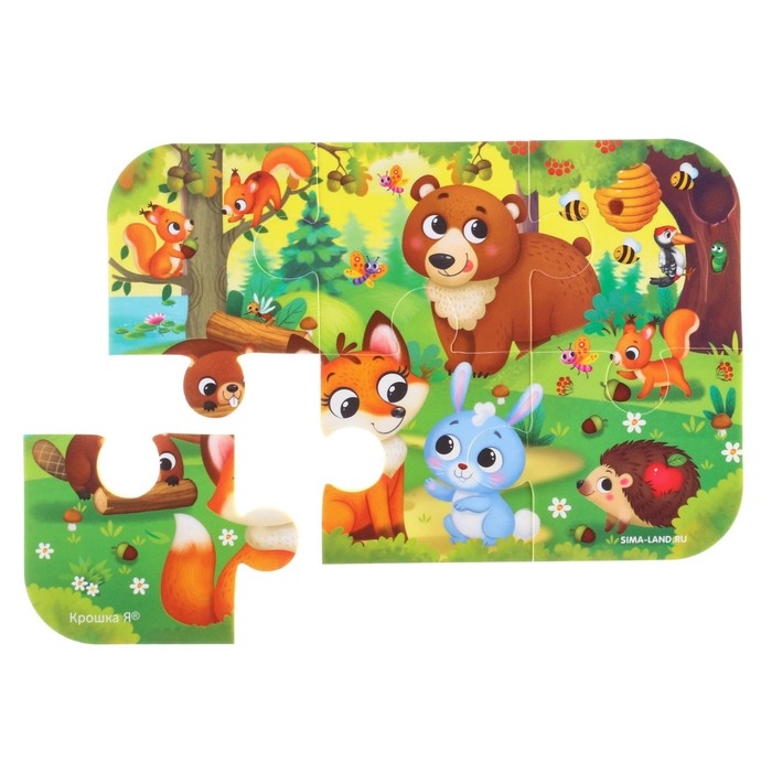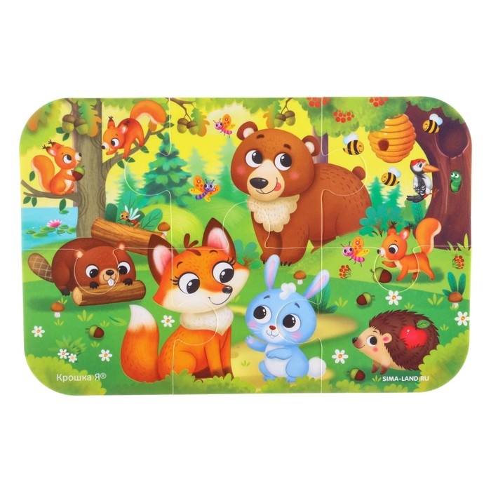 Мягкий пазл для малышей «Лесные зверята», 6 деталей, Крошка Я