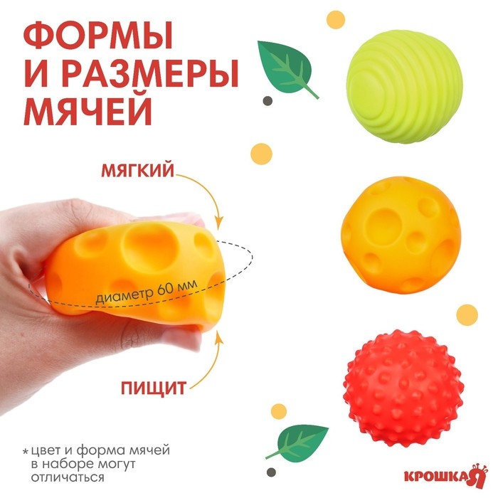 Набор развивающих тактильных мячиков «Пицца», с пищалкой, 3 шт, Крошка Я