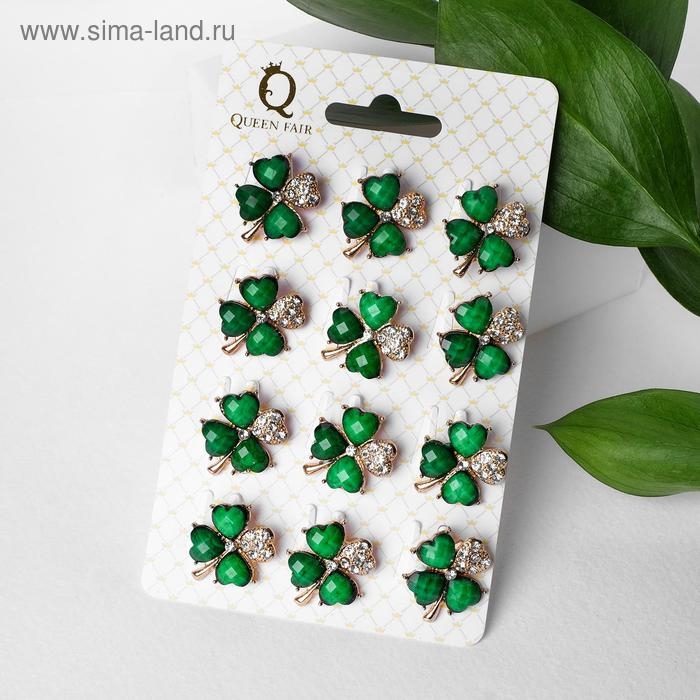 Брошь «Клевер», цвет бело-зелёный в золоте (неделимая фасовка 12 шт., цена за шт.)