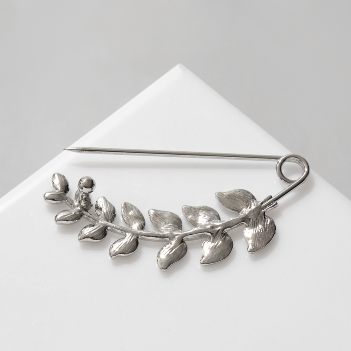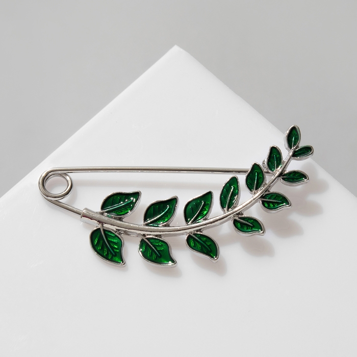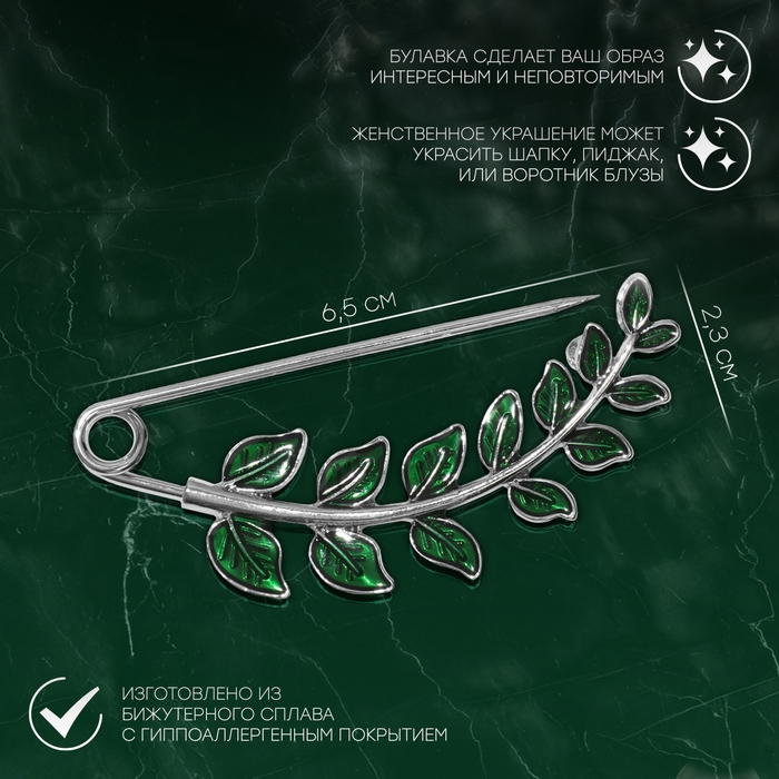 Данная булавка – настоящая находка для модниц, предпочитающих нетривиальные аксессуары. Брошь-булавка станет не только оригинальным дополнением вашего наряда, но и позволит без труда приколоть при необходимости палантин или шейный платок. Используйте её в качестве украшения шляпки, рубашки или галстука. Булавка «Веточка лиственная» 6,5 см, цвет зелёный в серебре внесёт особую нотку изящности в ваш образ.