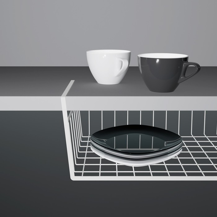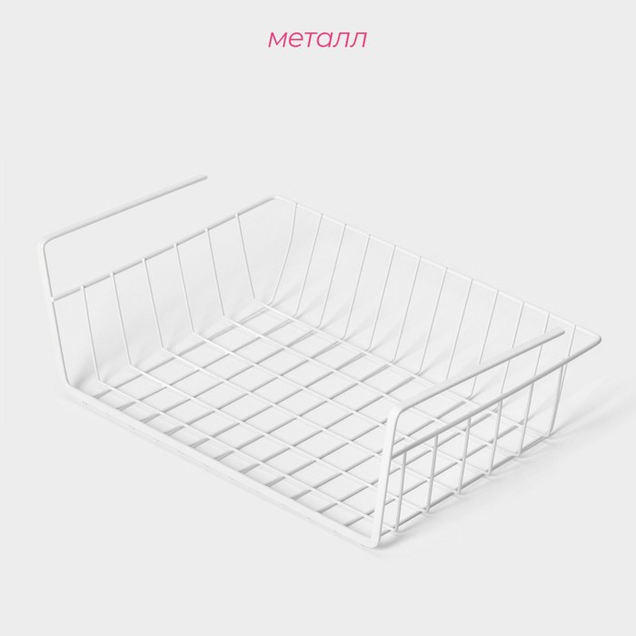 Корзина сетчатая навесная на полку Доляна, 40×25,5×14 см, цвет белый