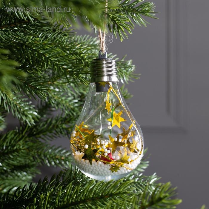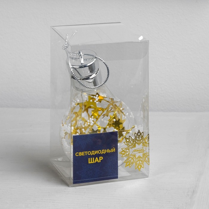 Набор ёлочных шаров «Золотистые нити» 2 шт., батарейки, 1 LED, свечение тёплое белое