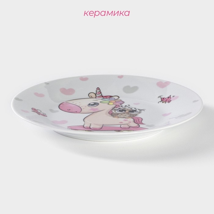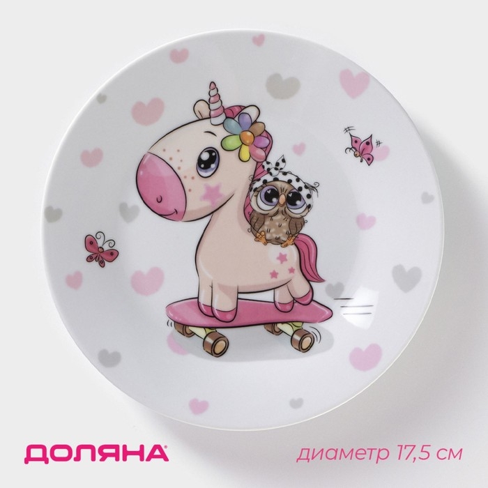 Тарелка керамическая Доляна «Совёнок и единорог», d=17,5 см, цвет белый