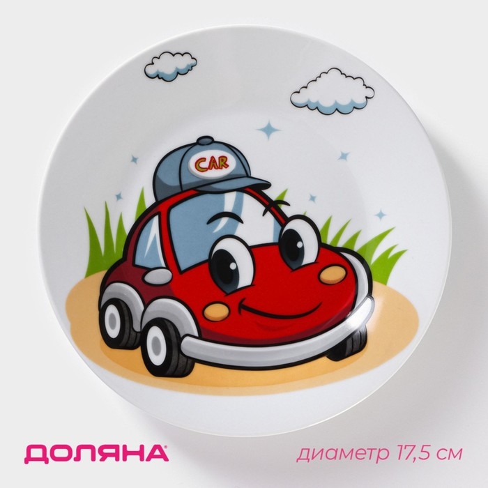 Тарелка керамическая Доляна «Машинка», d=17,5 см, цвет белый