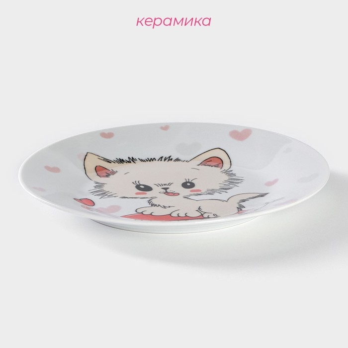 Тарелка керамическая Доляна «Котёнок на скейте», d=17,5 см, цвет белый