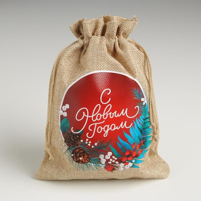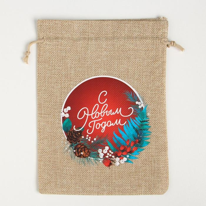 Мешок подарочный с термонаклейкой «Новогодний венок», 16 х 24 см , Новый год