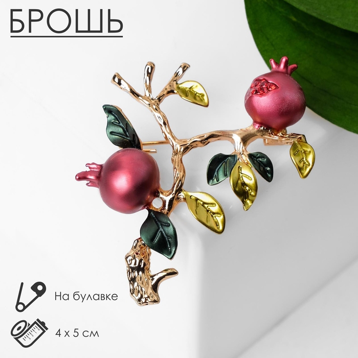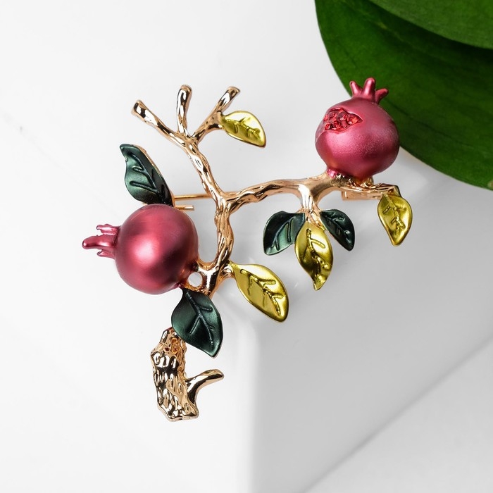 Брошь «Ветвь граната», цвет красно-зелёный в золоте