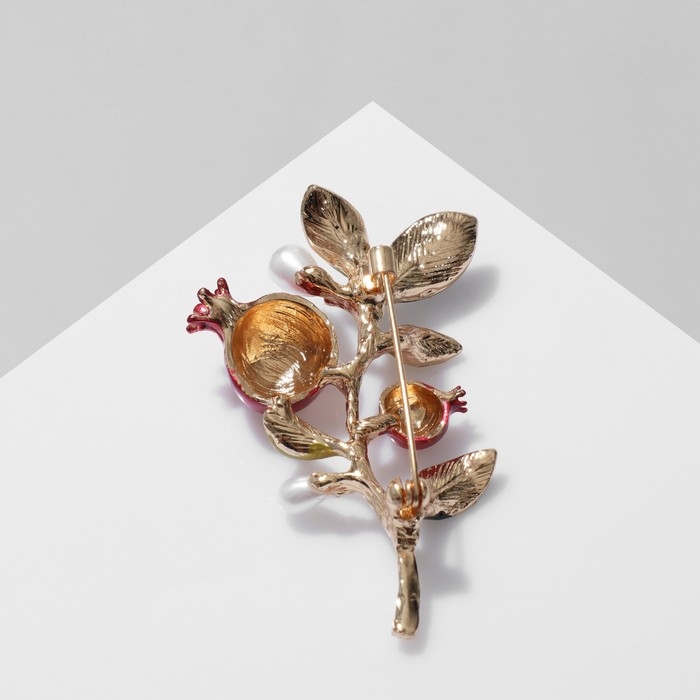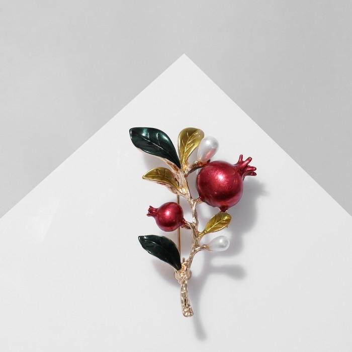 Брошь «Ветвь гранатовая», цвет красно-зелёный в золоте