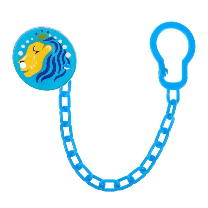 Держатель для соски - пустышки «Лев», на цепочке, цвет голубой