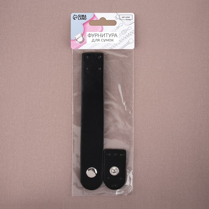 Застёжка пришивная для сумки, на кнопке, 15,5 × 2,5 см / 4,5 × 2,5 см, цвет чёрный/серебряный