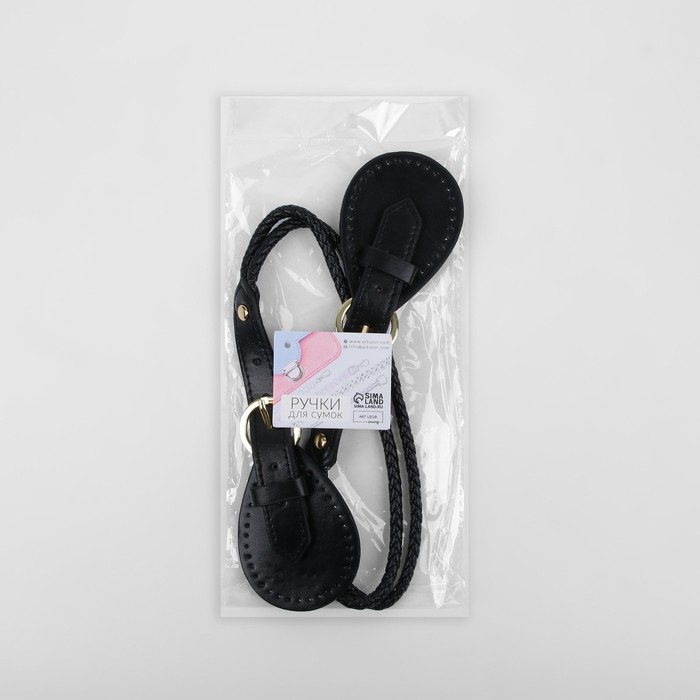 Ручка для сумки, шнуры, 60 × 1,8 см, с пришивными петлями 5,8 см, цвет чёрный/золотой