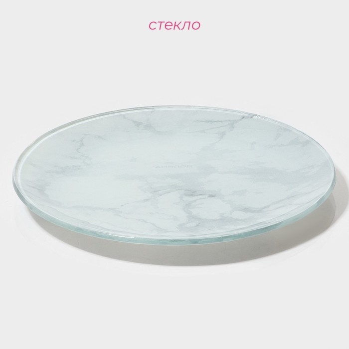 Тарелка стеклянная Доляна «Марбл белый», d=17,5 см, цвет белый