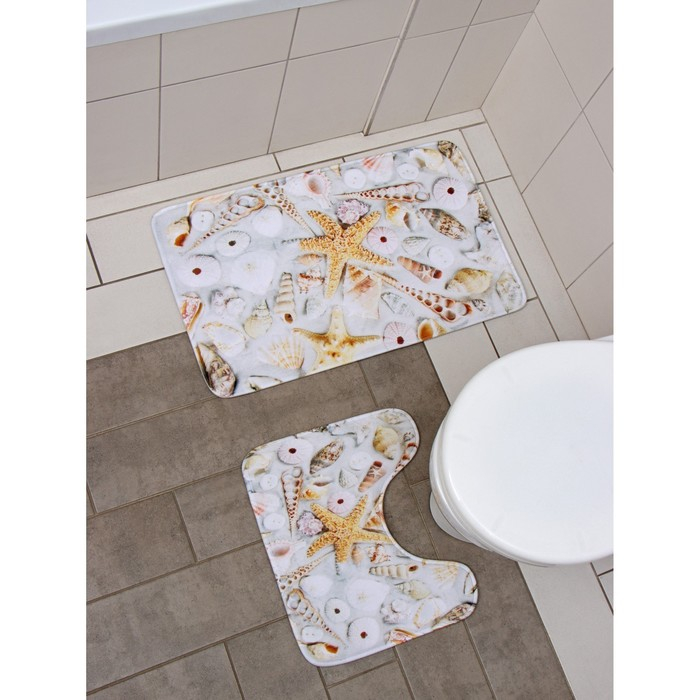 Коврики для ванной и туалета Доляна «Ракушки», 2 шт: 45×36 см, 75×44 см