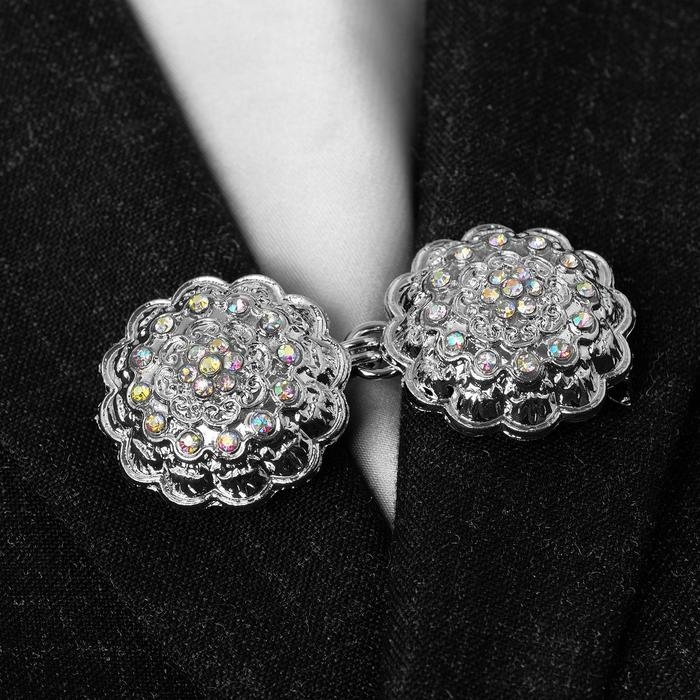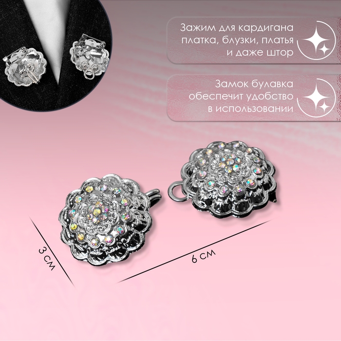 Зажим для кардигана «Ажур», цвет радужный в серебре