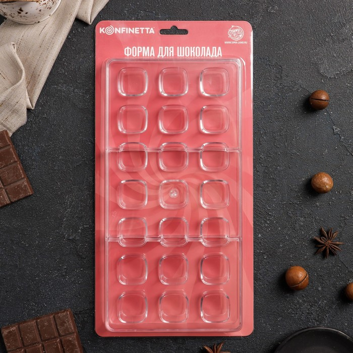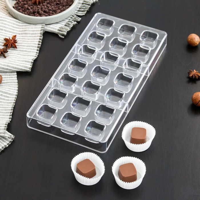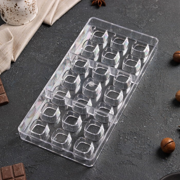 Форма для конфет и шоколада KONFINETTA «Куб», 27,5×13,5×3 см, 21 ячейка 2,5×2,5 см, прозрачный