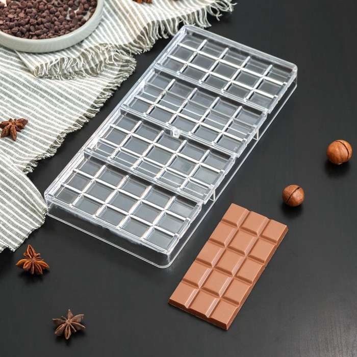 Форма для шоколада KONFINETTA «Плитка», 33×16,5×3 см, 4 ячейки, цвет прозрачный