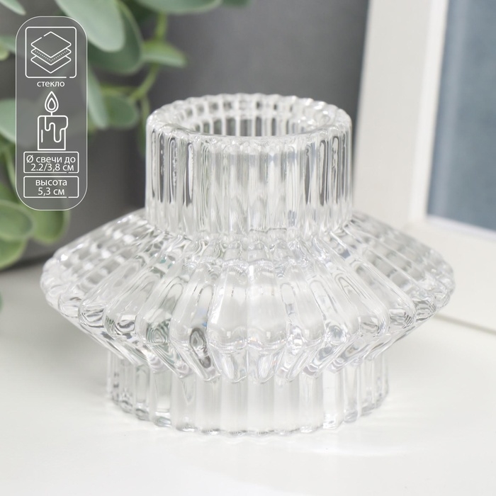 Подсвечник стекло на 1 свечу двусторонний "Юбочка" прозрачный 5,3х7,5х7,5 см