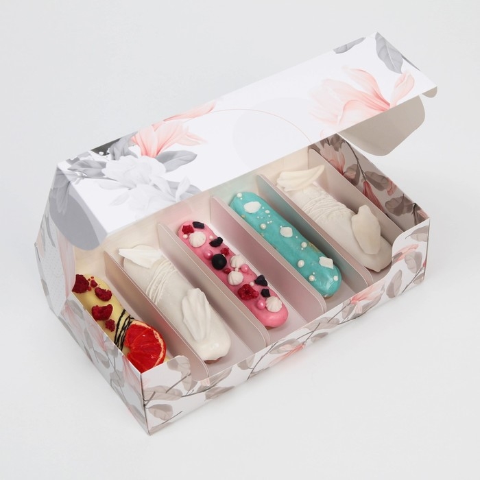 Коробка для эклеров, кондитерская упаковка, 5 вкладышей, «Для тебя», 25.2 х 15 х 7 см