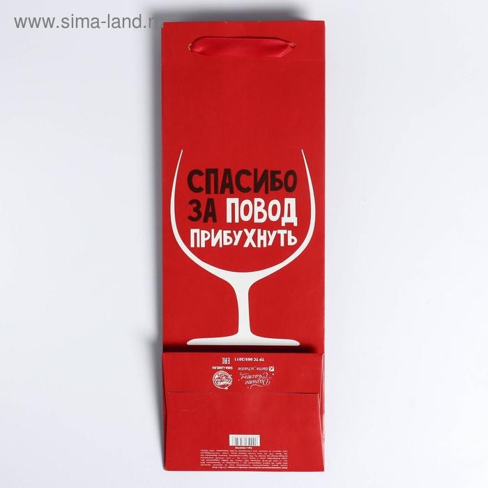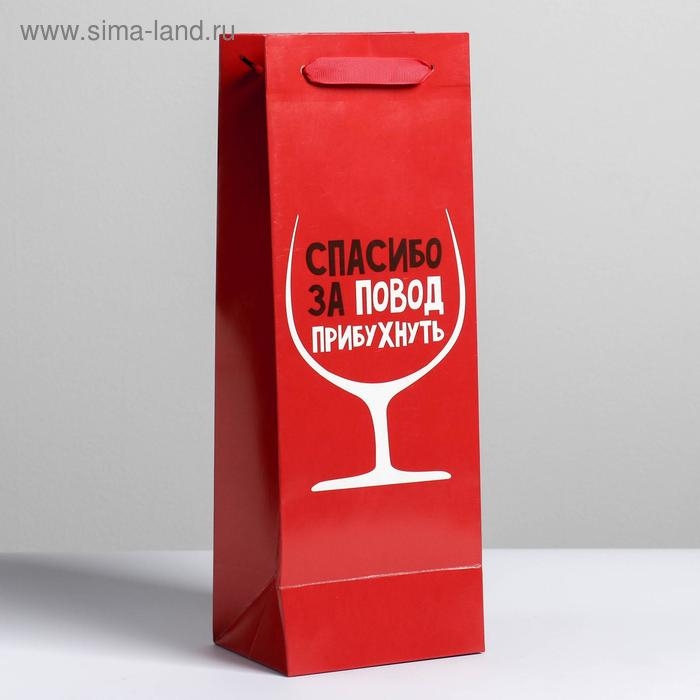 Пакет подарочный ламинированный под бутылку, упаковка, «Спасибо за повод», 13 x 35 x 10 см