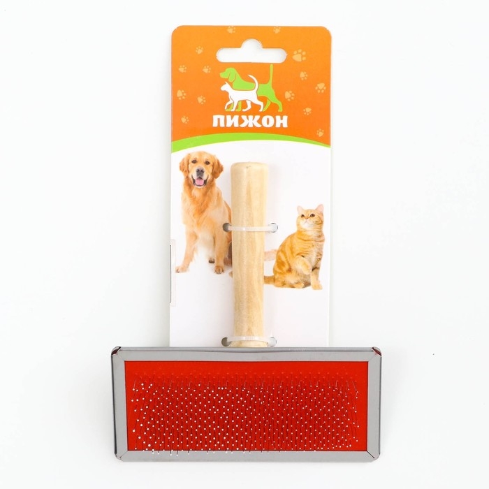 Щётка-пуходёрка малая жесткая с каплями, основание 50х50 мм, красная,