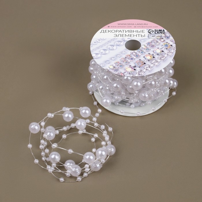 Жемчуг на леске, 3/8 мм, 9 ± 0,5 м, цвет белый