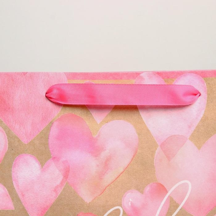 Пакет подарочный крафтовый горизонтальный, упаковка, With love, ML 27 х 23 х 11.5 см