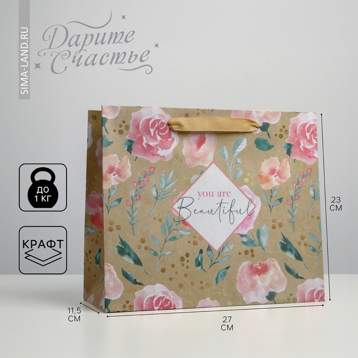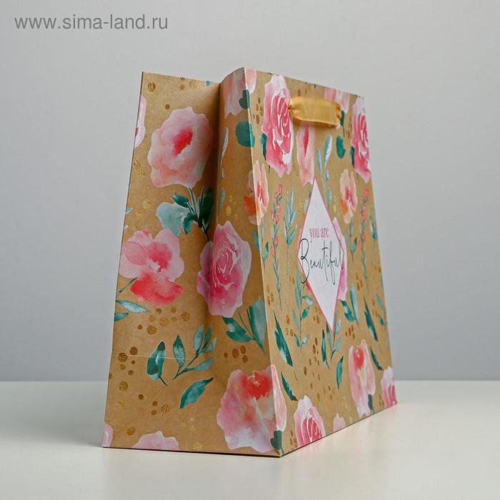 Пакет подарочный крафтовый горизонтальный, упаковка, «You are beautiful», ML 27 х 23 х 11,5 см