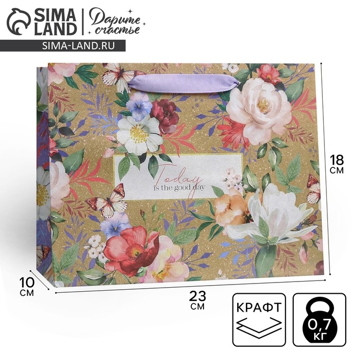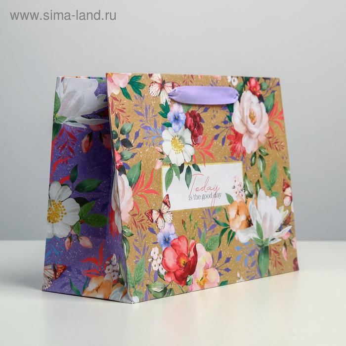 Пакет подарочный крафтовый горизонтальный, упаковка, «Today», 23 х 18 х 10 см