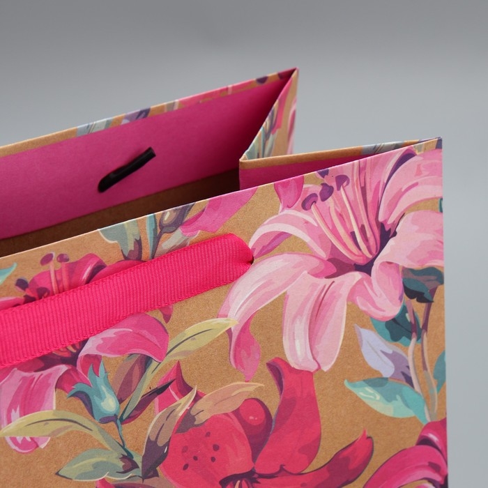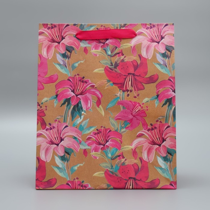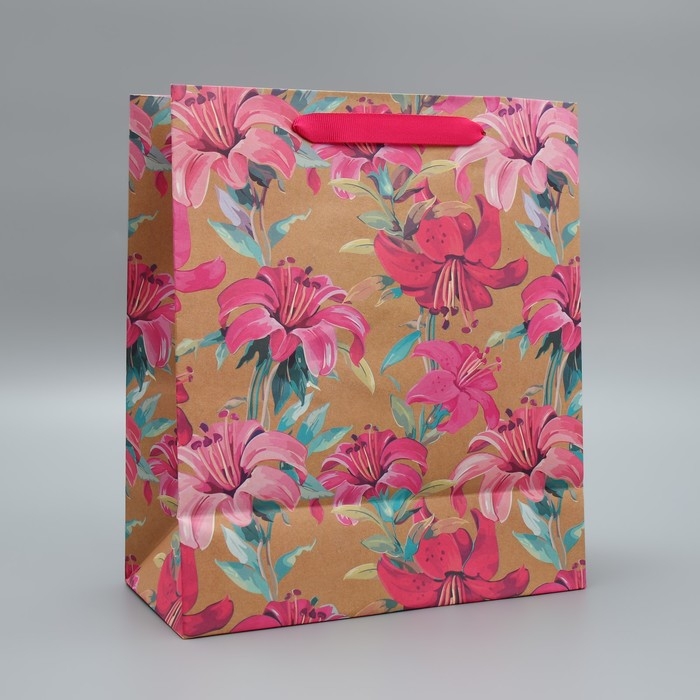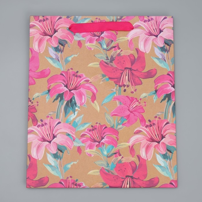 Пакет подарочный крафтовый вертикальный, упаковка, «Цветы», ML 23 х 27 х 11,5 см