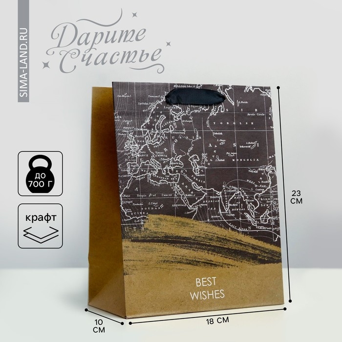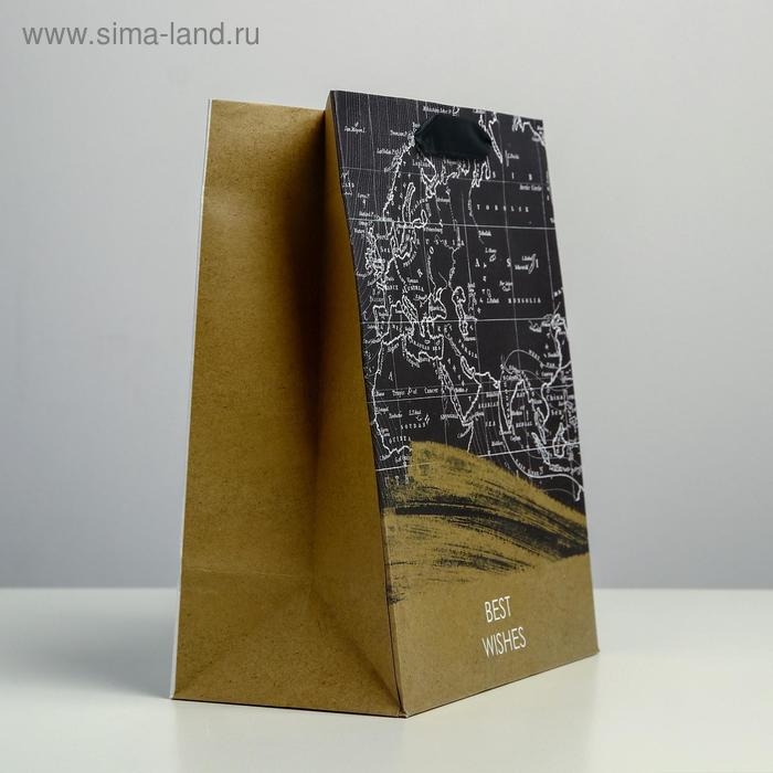 Пакет подарочный крафтовый вертикальный, упаковка, «Best wishes», MS 18 х 23 х 10 см