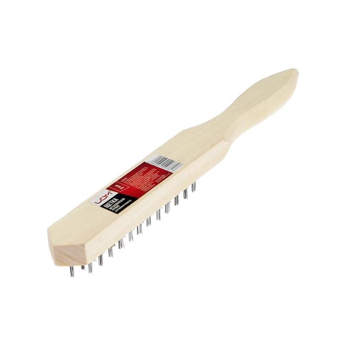 Щетка металлическая ручная ЛОМ, деревянная рукоятка, 4-рядная