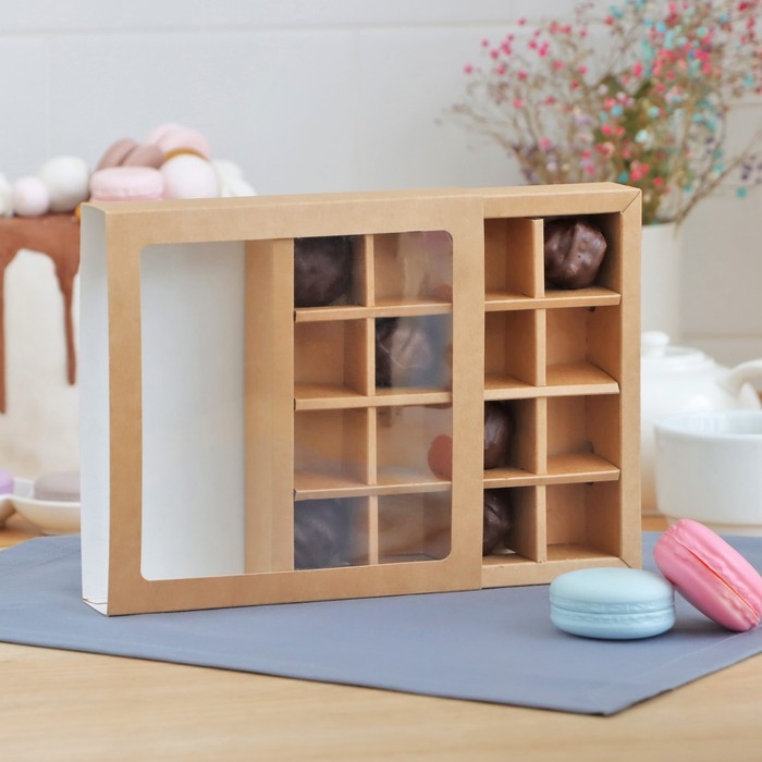 Коробка для конфет, крафт, 17,5 х 17,5 х 4 см
