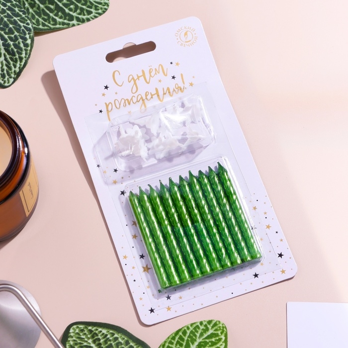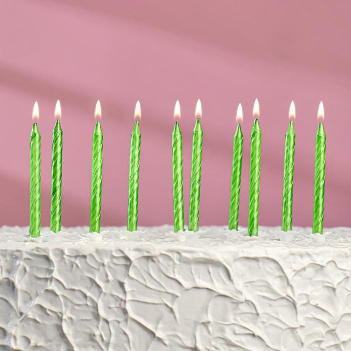 Свечи в торт "Спираль", 6 см, зелёные, набор 10 шт