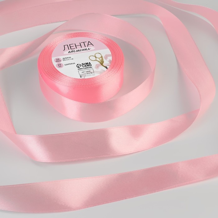Лента атласная, 25 мм × 23 ± 1 м, цвет розовый №04