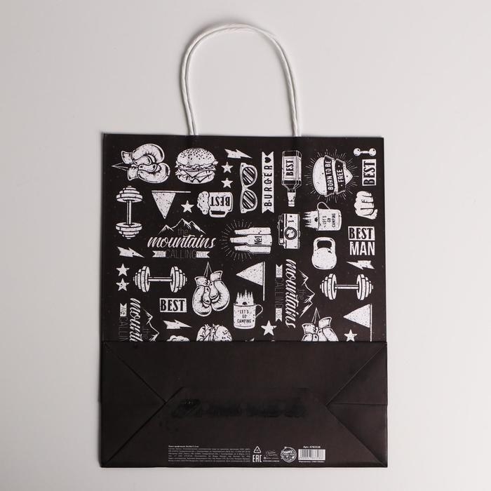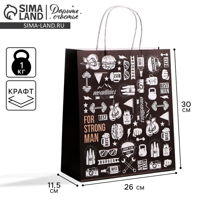 Пакет подарочный крафтовый, упаковка, For strong man, 26 х 30 х 11,5 см
