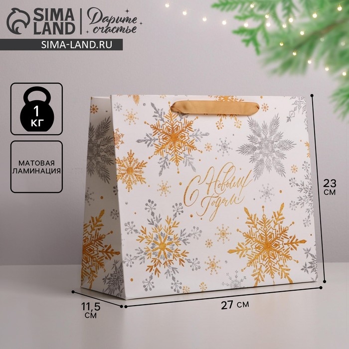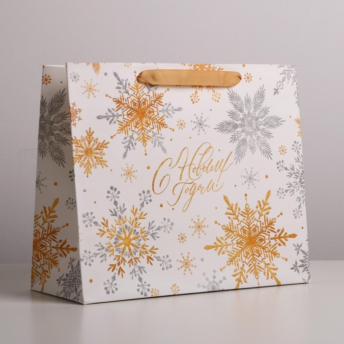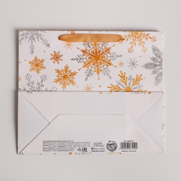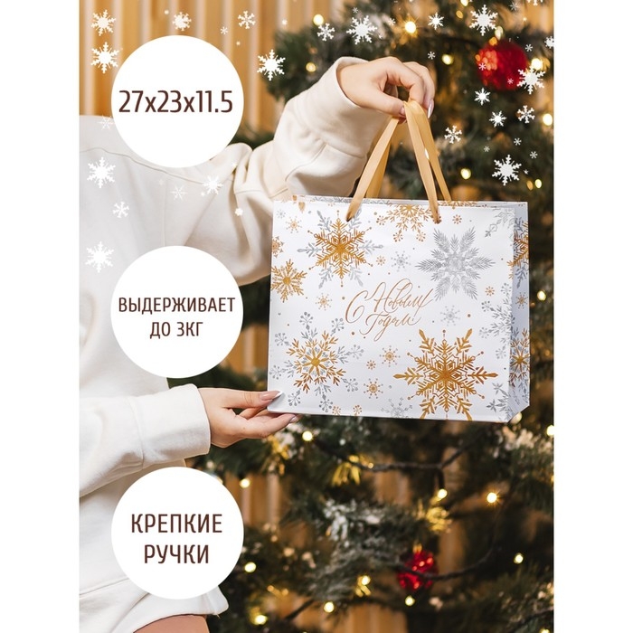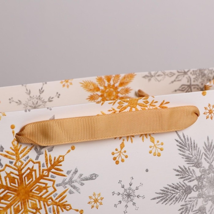 Пакет подарочный новогодний ламинированный «Волшебные снежинки», ML 27 х 23 х 11,5 см, Новый год