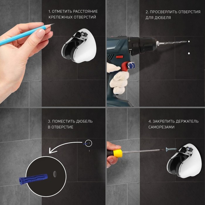 Держатель для душевой лейки ZEIN Z82, регулируемый, крепеж, пластик