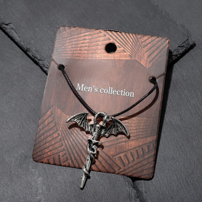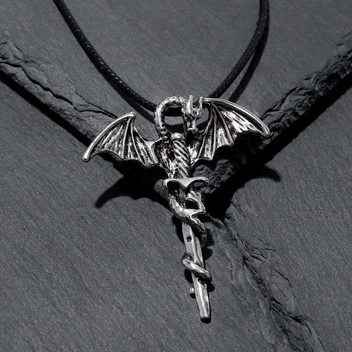 Кулон унисекс «Легенды» дракон с мечом, цвет чернёное серебро на чёрном шнурке, 60 см