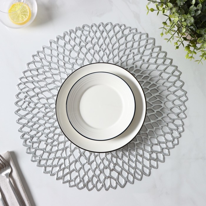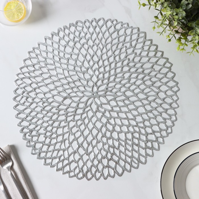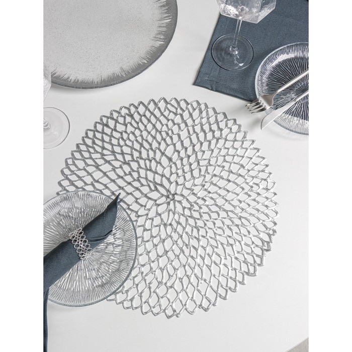 Салфетки сервировочные на стол Доляна «Лея», d=38 см, 4 шт, цвет серебряный