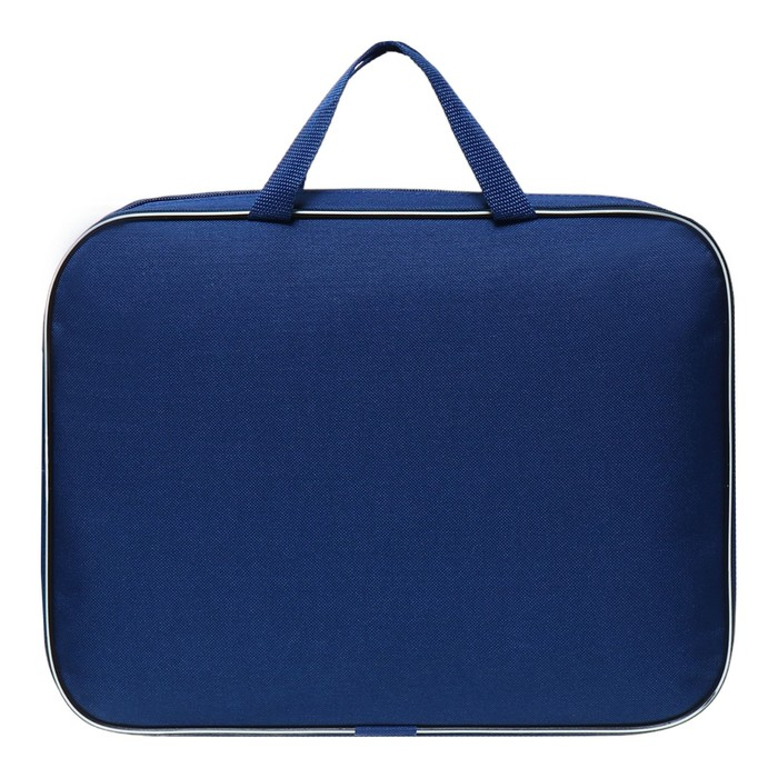 Папка текстильная на молнии с ручками, формат A4+. Размер 270 х 70 х 350 мм. Материал: износо-морозостойкий водоотталкивающий 100% полиэстер. Предназначена для транспортировки учебных принадлежностей, документов и различных аксессуаров. Имеет одно большое отделение с расширением и карманом внутри, застежка на молнии с мягким ходом. Для комфортной переноски ручки папки выполнены из прочной стропы