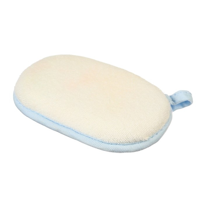 Мягкий и ворсистый материал мочалки бережно очистит нежную кожу малыша, а петелька в её нижней части подойдёт для удобного и практичного хранения.