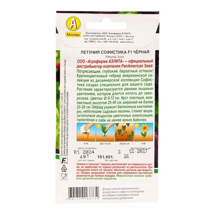 Семена Петуния Софистика черная F1 крупноцветковая, 4 шт.,