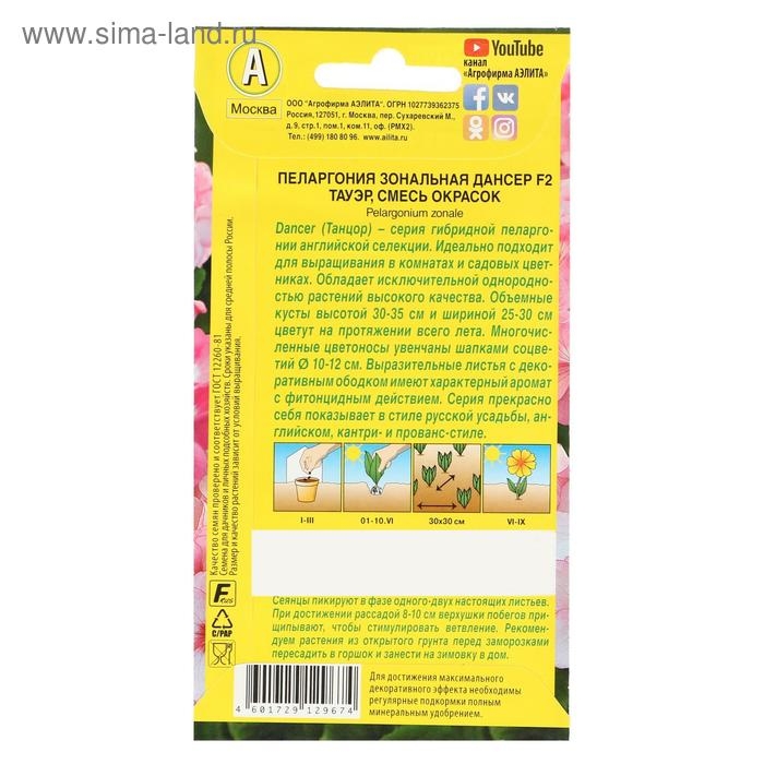 Семена цветов Пеларгония "Дансер Тауэр", смесь окрасок, F2, 5 шт.