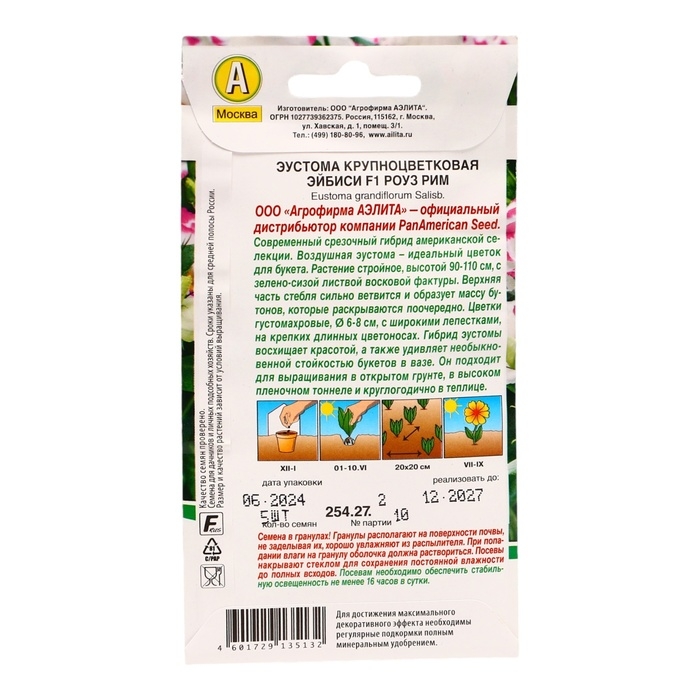 Воздушная эустома – идеальный цветок для букета. Современный срезочный гибрид американской селекции – растение стройное, высотой 90-110 см, с зелено-сизой листвой восковой фактуры. Верхняя часть стебля сильно ветвится и образует массу бутонов, которые раскрываются поочередно. Цветки густомахровые, Ø 6-8 см, с широкими лепестками, на крепких, длинных цветоносах. Гибрид эустомы восхищает красивыми цветками, а также удивляет необыкновенной стойкостью букетов в вазе. Растение подходит для выращивания в открытом грунте, в высоком пленочном тоннеле и в теплице (круглогодично).