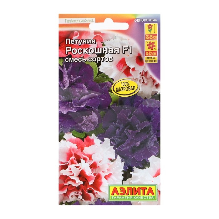 Огромные супермахровые цветки! Смесь представлена двумя великолепными гибридами американской селекции. Оба имеют пышные цветки диаметром от 8 до 12 см. Лепестки у Красного Пируэта бахромчатые, изрезанные, у Дабл Каскада ровные, волнистые. Растения кустовые, с хорошим ветвлением, высотой 25-35 см, шириной 25-30 см. Цветение достаточно обильное, с оптимальным балансом цветов и зелени. Смесь рекомендуется в основном для контейнерного выращивания на балконах, в мобильных кашпо в саду, на террасах и патио. Для успешного выращивания в цветниках открытого грунта желательно предусмотреть защиту от дождя.